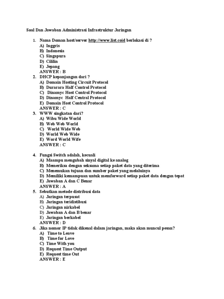 Soal dan jawaban administrasi infrastruktur jaringan.